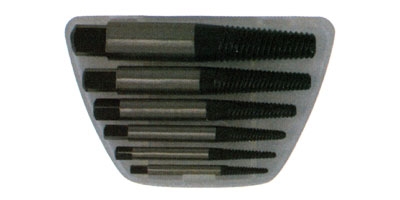 用于取出螺纹孔中残余断螺栓,断螺杆和断管残头。 根据断螺栓尺寸选择相应的取出器和麻花钻头; 在断螺栓上用麻花钻钻出相应的深度,再将断螺栓取出器旋入孔中, 至取出断螺栓