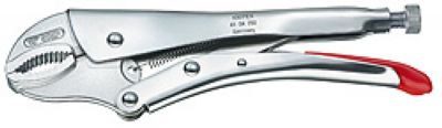 牢固夹持圆形物料,型材及平扁物料;大力型;配备有调节螺钉和释放杆;单手操作;由于肘杆作用,具有较大的夹持力;钳体:采用高强度特殊工具钢材料;嵌入式头部,采用铬钒钢模锻而成;头部用于夹持圆形工件,配备有断线刀口;长度180,头部镀镍,镀镍手柄