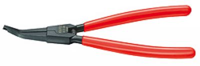 弯型钳嘴中心开有小孔,适用于标准直径12.00mm以上的弹簧,如机动车辆齿轮箱内的传动轴锁紧;弹簧最小开口间隙为2.2mm,长度200,头部磨光,塑料套柄