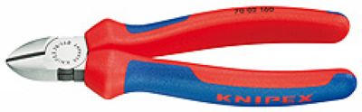 精密的剪切刀口适于剪切软线和硬线;切割硬度约为洛氏硬度62HRC;头部较窄,适用于小空间的操作;型 0:偏刃;长度125,头部抛光,双色双重材料手柄