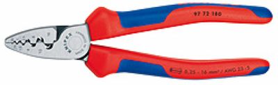 根据DIN 46228标准第一部分和第四部分,在0.25至16mm2的应用范围内压接线;用所标记尺寸大小的梯形模压接线,能确保端子和导线的可靠连接;钳子侧面有9个极深的锥形压线孔;长度180,头部抛光,双色双重材料手柄,应用范围套管式端子,压接范围0.25-16.0